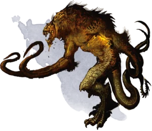 The Demogorgon is an 18-foot-tall ape-like, two-headed demon from the Abyss (not Hell, in fact. The Abyss is different, actually). Unlike in Stranger Things, where “Demogorgon” is used to describe a type of monster, the Demogorgon of DnD lore is actually just one beast. He’s a demon lord and a lesser deity of domination and wants nothing more than to drag you down to the Abyss. He’s also known as Siosivash, Leemooggoogoon (say that one five times fast!), and Ahmon-Ibor the Sibilant Beast.